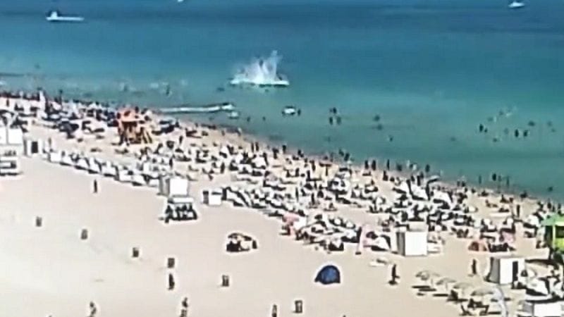 Imagens captadas por câmeras de segurança mostraram o avião caindo bem próximo de banhistas. O acidente ocorreu às 13h20min do horário local.
