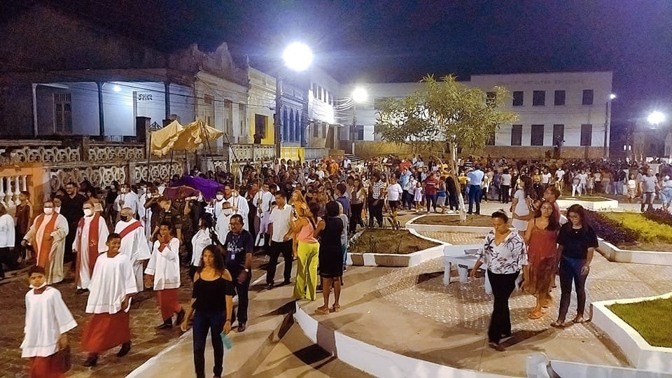 Após a celebração da Paixão e Morte de Jesus Cristo que se deu na Catedral Diocesana, o cortejo com a Imagem de Senhor Morto e de Nossa Senhora das Dores, percorreu os principais pontos da cidade. O que deu pra perceber no semblante de cada fieis, foi a emoção de poder voltar a participar de grandes atos religiosos da Igreja como manda a tradição e com casa cheia.