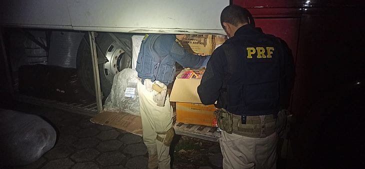 A Polícia Rodoviária Federal (PRF), em operação conjunta com o canil do Batalhão de Operações Especiais (BOPE), apreendeu na última sexta-feira (29), diversas mercadorias que estavam sendo transportadas sem nota fiscal em um ônibus clandestino, em rodovia alagoana. Além dessa apreensão, também foram recolhidas mercadorias sem documentos fiscais na cidade de Canapi, no domingo (01).