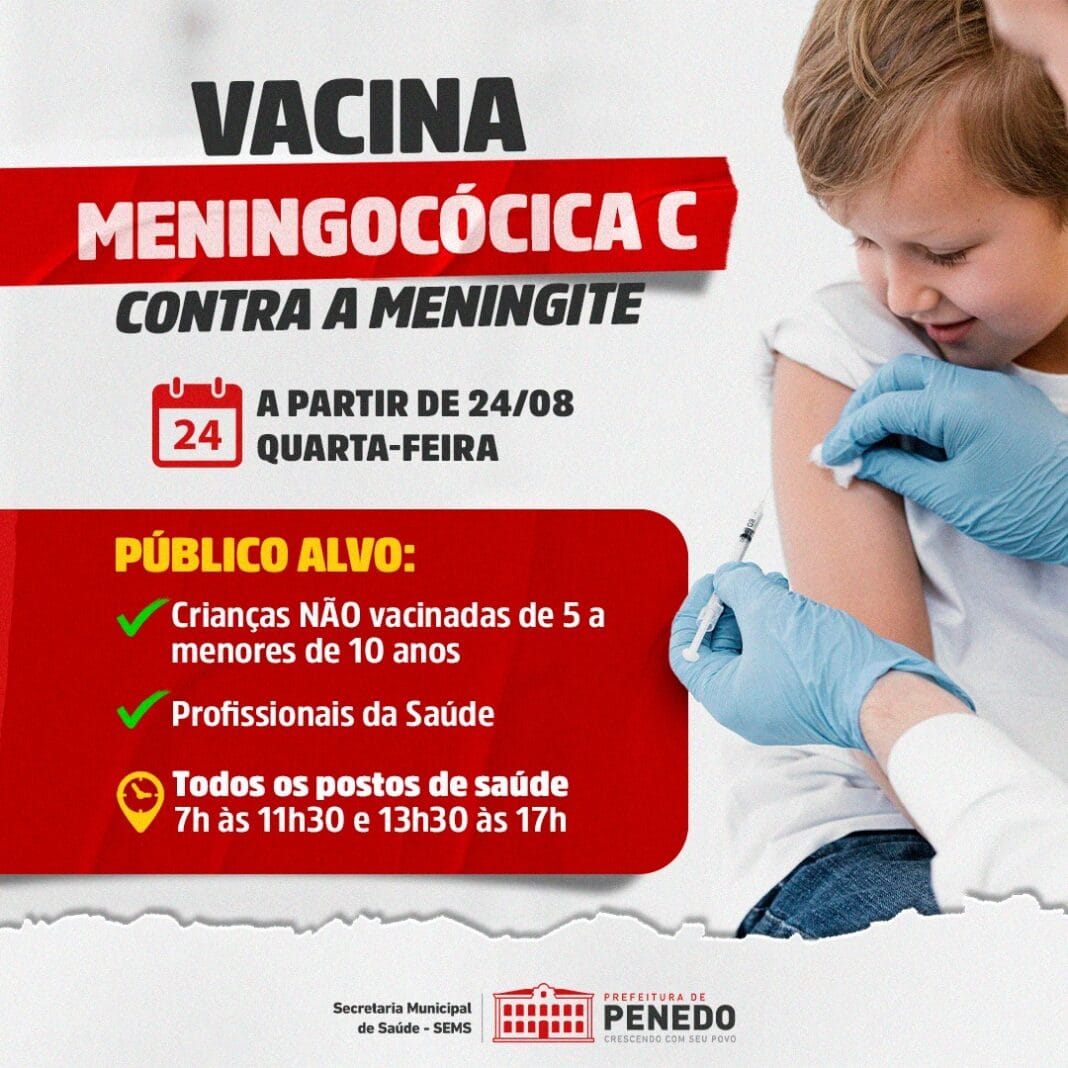 A Secretaria Municipal de Saúde (SEMS) inicia nesta quarta-feira, 24, a campanha de vacinação contra meningite em todos os postos de saúde de Penedo.