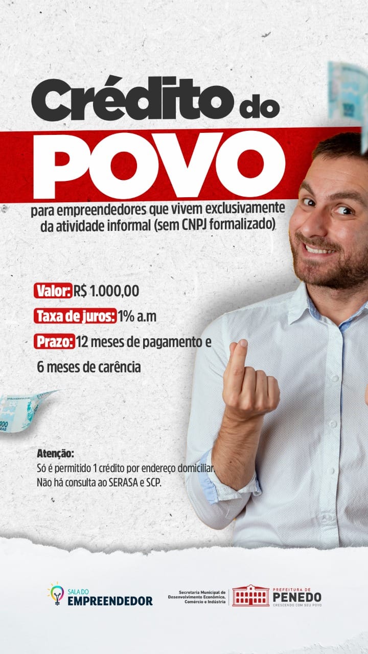 Trabalhadores informais que tiram seu sustento sem ter CNPJ formalizado dispõem do Crédito do Povo, financiamento que disponibiliza R$ 1.000,00 (mil reais) sem consulta ao SPC ou Cerasa.