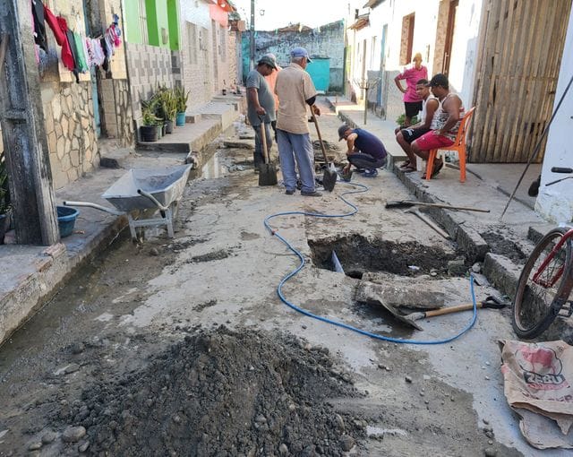 A nossa reportagem esteve passando por aquela localidade, quando se deparou com uma equipes de homens da Secretaria de Serviços Públicos, já trabalhando nesse sentido. Fiscalizando as obras estavam o Vereador Val da Banana e os moradores da rua em que está sendo feito os trabalhos Manoel do Bujão e Túlio.