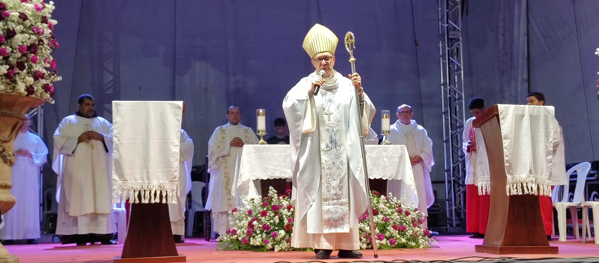 No final da celebração o Bispo de Penedo Dom Valdemir Ferreira, usou a palavra e mandou o recado duro: ” É preciso que respeitem os atos religiosos, o momento da Santa Missa, é sagrado! Não é hora de se testar som de shows. “Lembrem-se : A festa de baixo só existe , por causa da de cima, disparou Dom Valdemir.” De acordo com informações, providências serão tomadas para que isso não venha mais acontecer durante os outros dias de celebrações.