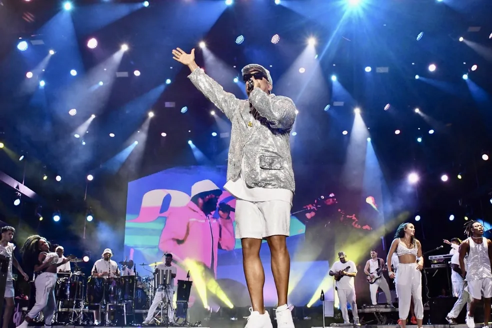 Compadre Washington e Beto Jamaica, vocalistas do grupo É o Tchan, durante show em Salvador — Foto: Divulgação/Sercio Freitas