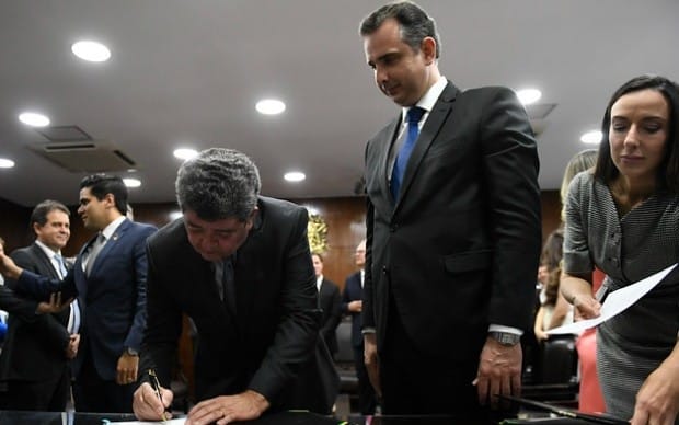 O empresário Fernando Farias (MDB) tomou posse como senador por Alagoas nesta quinta-feira (2), após Renan Filho apresentar o pedido de licença para ficar à frente do Ministério dos Transportes.