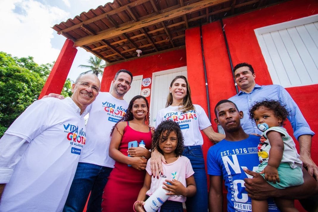 Abril de 2023. Lucas e Adriana recebem das mãos do Governador Paulo Dantas e do Prefeito Ronaldo Lopes as chaves do novo lar. A casa agora é toda de alvenaria, tem mais cômodos, um telhado seguro, banheiro amplo revestido com cerâmica, cozinha, caixa d’água e ‘até varanda pro quintal’, acrescenta Adriana Farias.