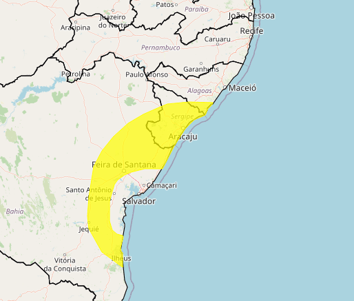 Veja, abaixo, os municípios listados no alerta amarelo do Inmet: