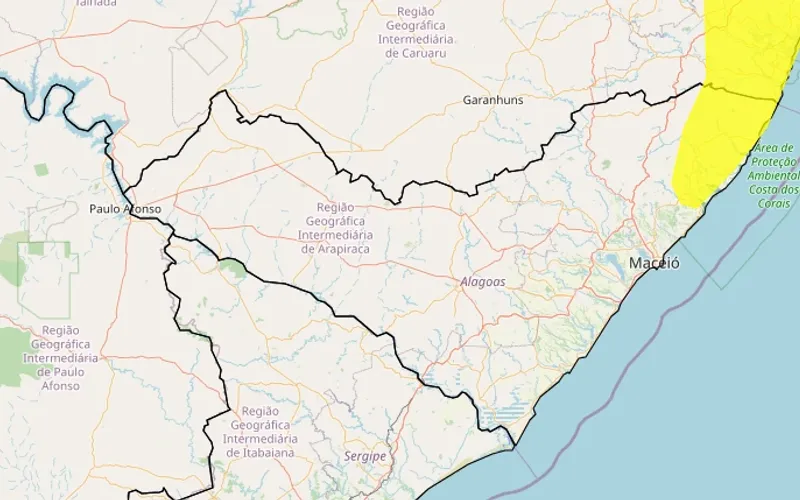 O Instituto Nacional de Meteorologia (Inmet) emitiu, na manhã desta sexta-feira (9), um novo alerta de chuvas para 14 cidades de Alagoas. O alerta, de cor amarelo, é de “perigo potencial” e tem validade até às 10h desta sábado (10).