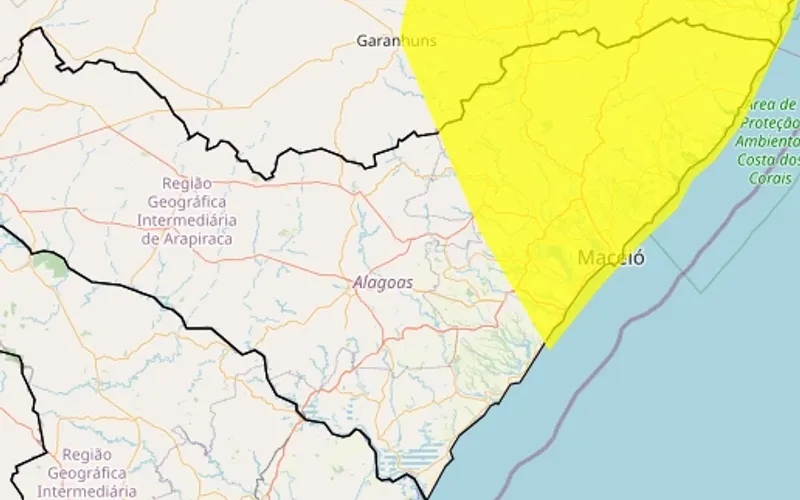 O Instituto Nacional de Meteorologia (Inmet) renovo um alerta amarelo (de perigo potencial), na manhã desta terça-feira (27), de acumulado de chuvas para Maceió e mais 42 municípios alagoanos. O aviso é válido até quarta-feira (28), às10h.