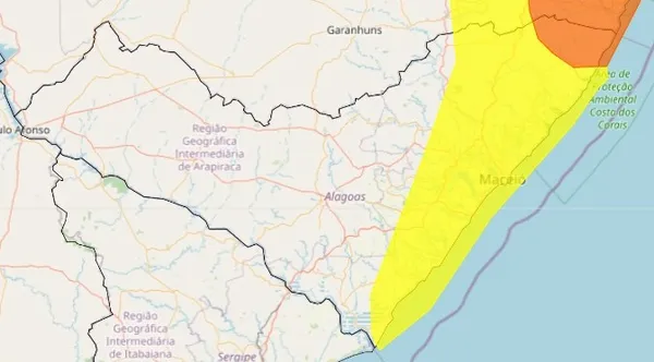 Cidades de Alagoas sob alerta laranja