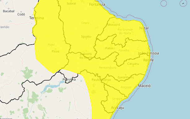 Segundo o Inmet, todas as cidades do estado permanecem sob aviso de nível amarelo, que é emitido quando há perigo potencial.
