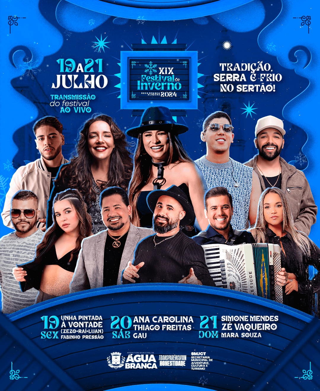 Tradição, Serra e Frio no Sertão. É com esse slogan que o Festival de Inverno de Água Branca (FIAB) chega em sua 19ª edição neste final de semana iniciando a primeira etapa do Circuito Alagoano de Inverno 2024.
