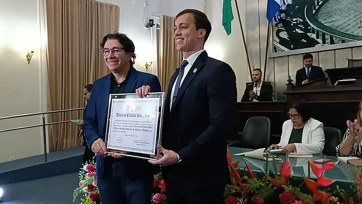 Em uma grande cerimônia promovida pela Assembleia Legislativa de Alagoas (ALE) nesta sexta-feira (02) no prédio histórico da ALE, no Centro de Maceió , o reitor do Uninassau e CEO do grupo Ser Educacional, o paraibano Jânyo Janguiê Bezerra Diniz, recebeu das mãos do ilustre e atuante deputado estadual delegado Leonam Pinheiro, o honroso título de cidadão honorário do estado de Alagoas.