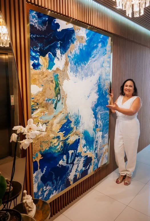 A amostra que está acontecendo no período de 06/12 a 06/01 está sob a curadoria da própria artista, e é composta por 30 trabalhos sob a luz da arte abstrata com acrílico derramando sobre tela e textura. Cada uma das suas obras acompanha um olhar poético da própria artista em forma de poesia.