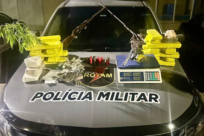 Além disso, quase um quilo de crack e uma balança de precisão também foram localizados. Na casa do segundo suspeito, as guarnições encontraram 14 quilos de maconha divididos em 13 tabletes e quase dois quilos de cocaína.