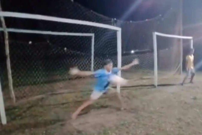 Um menino de 16 anos morreu após defender um pênalti durante brincadeira em comunidade de Maués (AM). Edson Lopes Gama estava na posição de goleiro quando usou o próprio peito para defender a bola. Após o impacto, o adolescente cai no chão com dores.