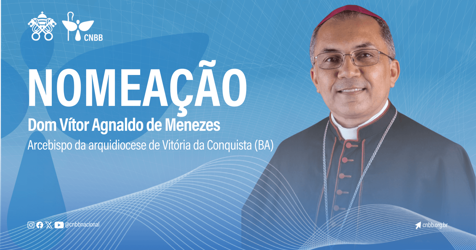 O Papa Francisco nomeou nesta sexta-feira, 14 de fevereiro, dom Vítor Agnaldo de Menezes, com novo arcebispo da arquidiocese de Vitória da Conquista (BA), transferindo-o da diocese de Propriá (SE). A Conferência Nacional dos Bispos do Brasil (CNBB) enviou saudação.