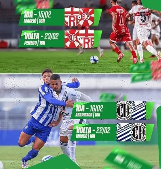 CSA e ASA disputam a outra vaga na final. O primeiro jogo acontece no domingo (16), às 16h, no Estádio Coaracy da Mata Fonseca, em Arapiraca. A decisão será no dia 22, também às 16h, no Estádio Rei Pelé.