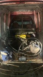 No interior da Fiorino, os militares encontraram todos os materiais subtraídos da Estação da Codevasf, além de mais objetos utilizados em práticas criminosas, como balaclavas, lanternas e luvas.