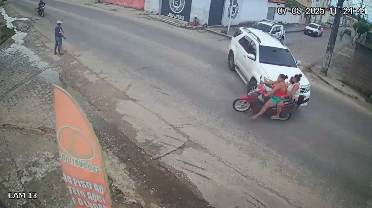 Uma câmera de segurança registrou o exato momento em que um carro colidiu com uma motocicleta que transportava duas mulheres e uma criança, na rodovia Mário Freire Leahy, em Penedo, Alagoas. O acidente ocorreu enquanto uma viatura da Patrulha Maria da Penha da Polícia Militar seguia logo atrás dos veículos envolvidos.