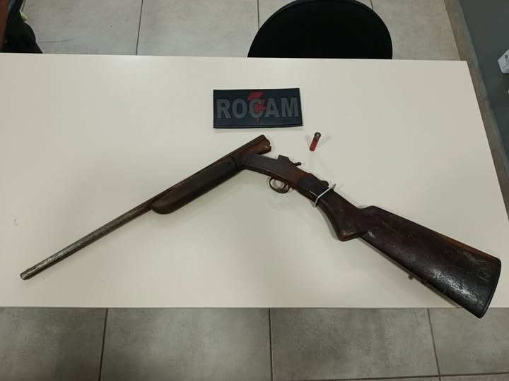 Diante da suspeita, os militares realizaram incursão a pé e, no trajeto, identificaram vestígios de material comumente utilizado para embalagem de entorpecentes. Durante a varredura no perímetro, foi encontrado um buraco recém-coberto por terra e folhas, no qual estava escondida uma espingarda calibre .36, contendo uma munição pinada.