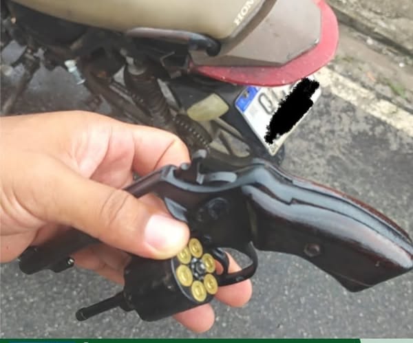 No decorrer da ação, o suspeito descartou uma arma de fogo (.32) e, posteriormente, foi abordado mais à frente. O indivíduo se deslocava para uma vaquejada e estava acompanhado de uma mulher na garupa da moto.