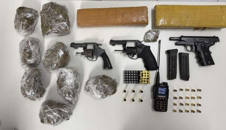Dentro do veículo onde os suspeitos estavam, foram encontrados três armas de fogo — uma pistola e dois revólveres —, além de aproximadamente dois quilos de maconha. Na sequência da operação, equipes se deslocaram até Arapiraca, onde localizaram mais um quilo da droga escondido em um imóvel usado como ponto de armazenamento, totalizando três quilos de entorpecentes apreendidos. Documentos falsificados também foram recolhidos no local.