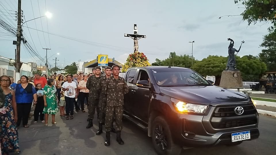Durante o cortejo a imagem os participantes cantaram, rezaram e celebrando o encerramento da festividade, em um momento de forte expressão de religiosidade popular.