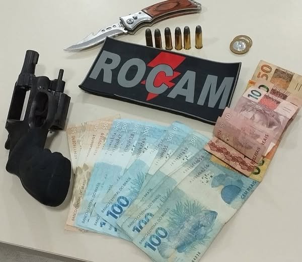 Além da arma, foram localizados uma pochete e uma carteira porta-documentos contendo R$ 1.752,00 (mil setecentos e cinquenta e dois reais) em espécie.