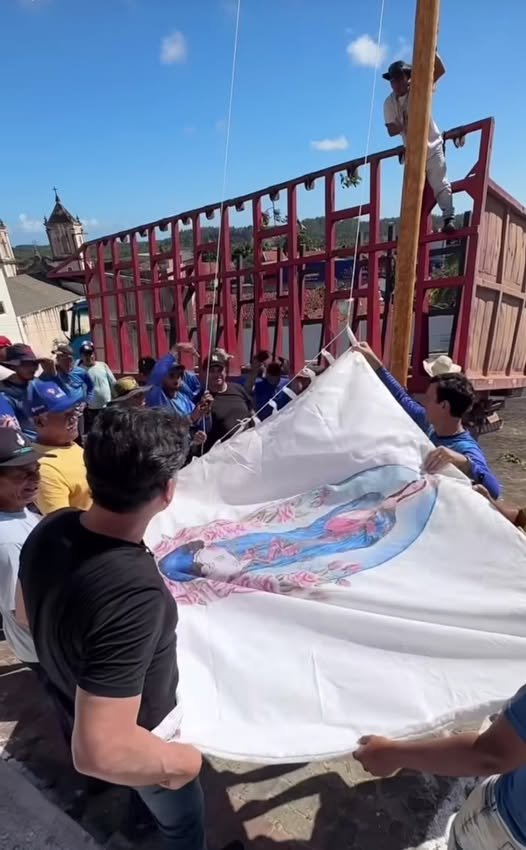 No local, o mastro foi descascado e, logo após, levantado, culminando no hasteamento da bandeira de Nossa Senhora, que permanecerá erguida até o dia 08 de dezembro, data em que se celebra a padroeira.