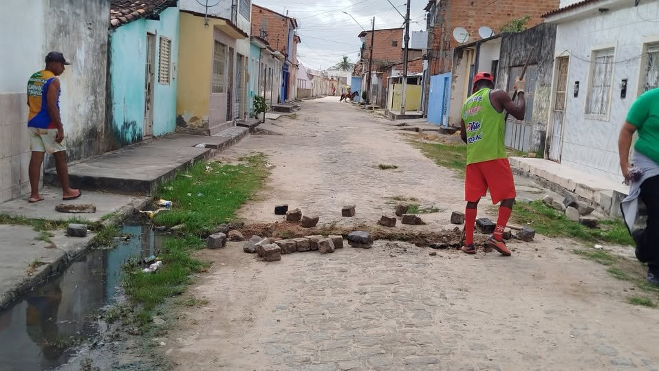 Moradores da Rua José Coelho no centro da cidade, precisamente na comunidade da Santa Cruz, realizam limpeza de esgoto em frente as suas residências, quando na verdade o papel e a obrigação é da Prefeitura cumprir com essa responsabilidade. Até porque, a população paga seus impostos para ter uma qualidade de vida digna. Resumindo: Isso, é questão de saúde pública.