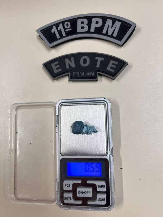 Devido à falta de conexão para lavratura eletrônica no local da ocorrência, o homem foi conduzido ao CISP para formalização do procedimento. No ponto de apoio, a substância foi pesada, totalizando 0,59 gramas, e foi confeccionado um Termo Circunstanciado de Ocorrência (TCO), conforme previsto no Artigo 28 da Lei 11.343/2006, que trata do porte de droga para uso pessoal.