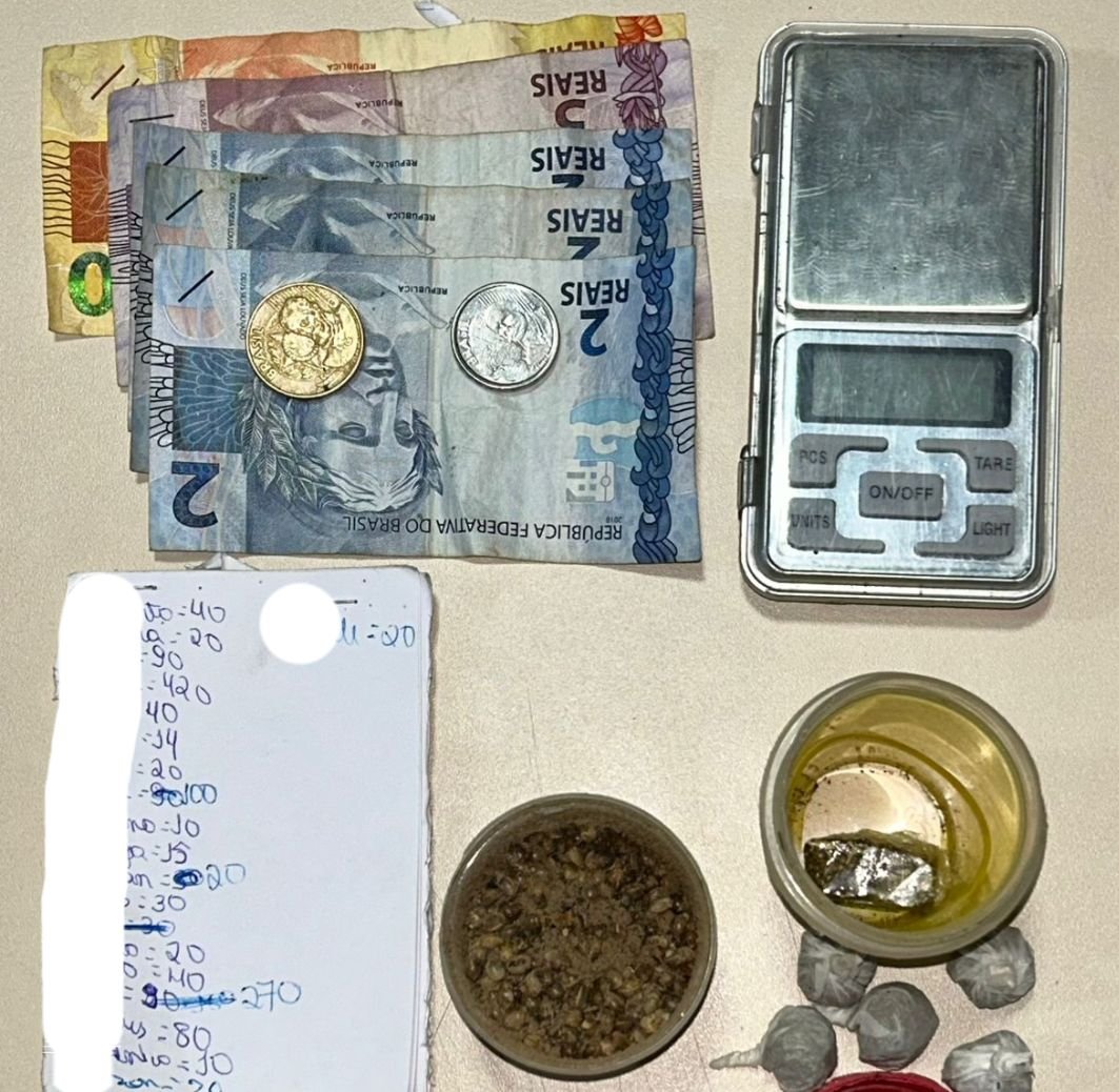 A equipe recebeu denúncia de movimentação suspeita em uma residência e, após observação, flagrou usuários comprando drogas no local. O autor foi flagrado dentro da casa com porções de maconha, sementes, balança de precisão, anotações do comércio ilícito e dinheiro trocado.