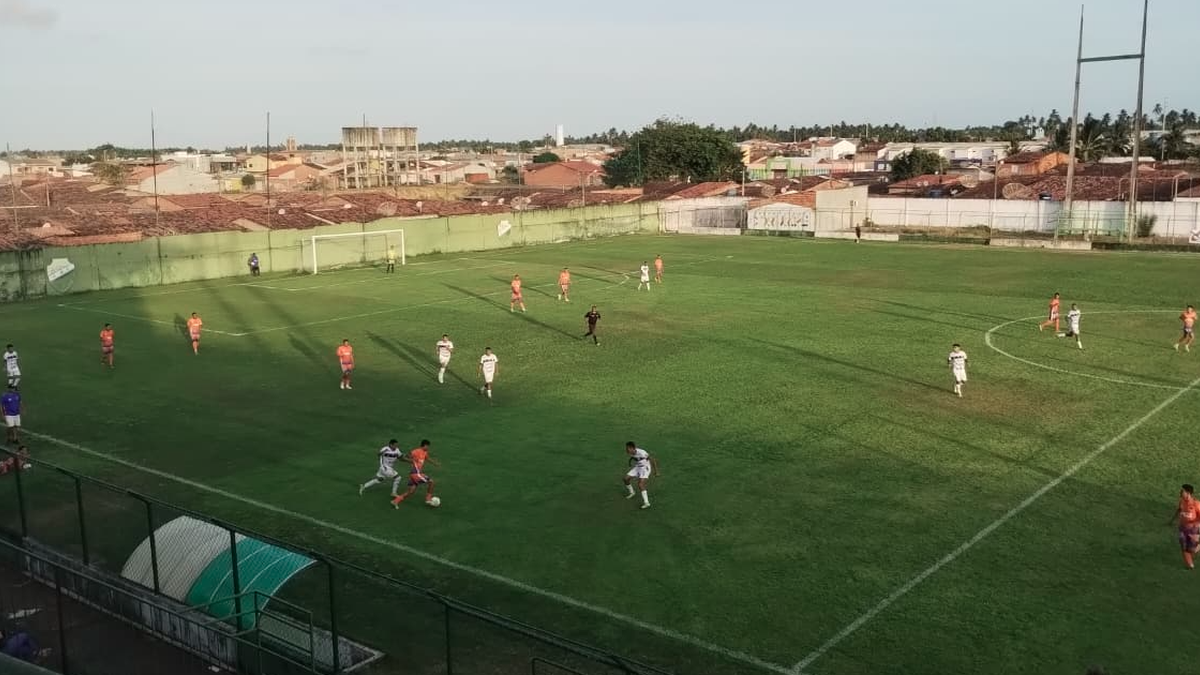 O Coruripe seguiu melhor no jogo até os 14 minutos. A partir daí, o Agrimaq equilibrou as ações e passou a atacar com mais intensidade pelos dois lados do campo. Aos 26 minutos, Mascote recebeu a bola na marca do pênalti e finalizou forte, abrindo o placar para os visitantes.