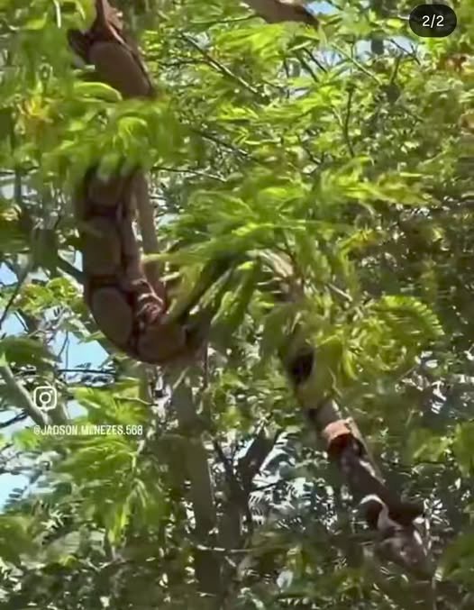 A descoberta viralizou, com vídeos mostrando a cobra nas árvores e a mobilização para sua remoção, gerando susto, mas também curiosidade.