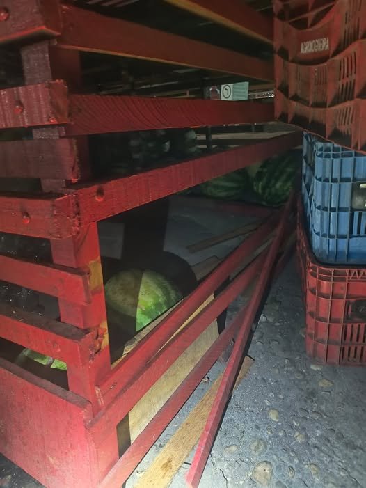 No estabelecimento, foram encontradas melancias já retiradas do interior da gaiola de armazenamento, após rompimento da grade de proteção, caracterizando o crime de furto qualificado, praticado durante o repouso noturno e em concurso de pessoas.