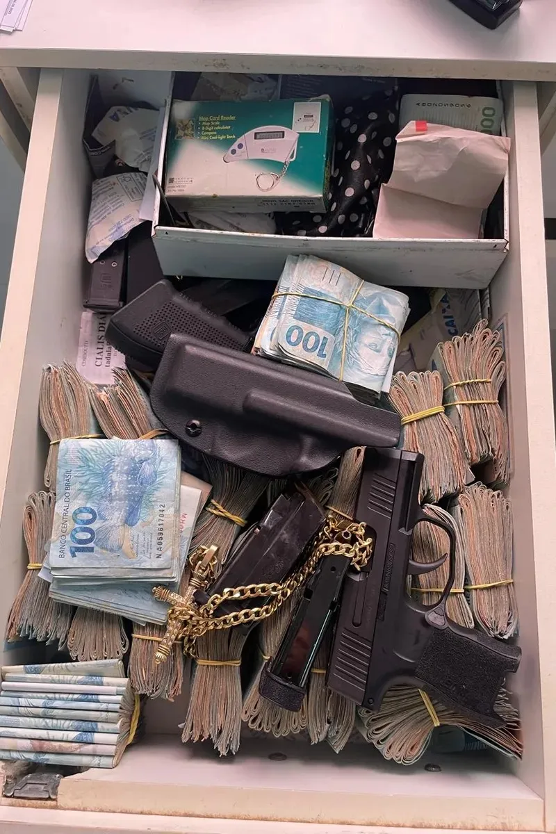 De acordo com a PF, R$ 775.420 foram apreendidos, US$ 24 mil (dólares), e € 10.625 (euros). Além disso, joias avaliadas em R$ 300 mil e duas armas (que não foram avaliadas) também foram apreendidas.