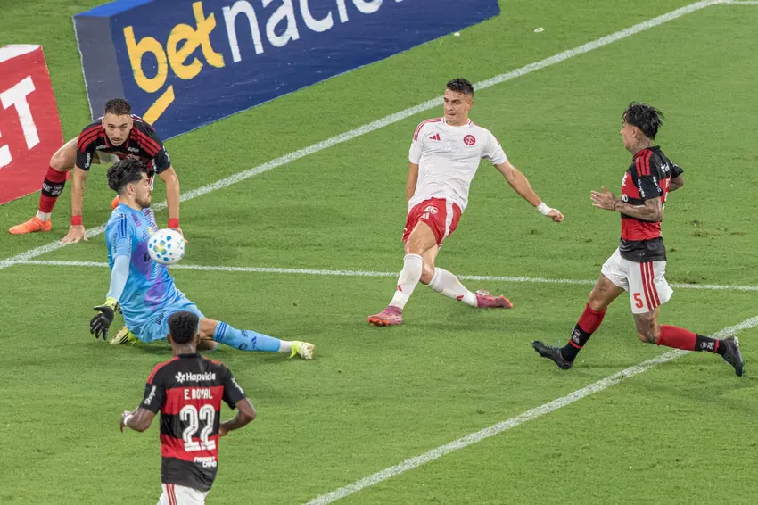 O Rubro-Negro teve o controle da bola durante o confronto, mas caiu na isca do Internacional. Aos 47′, em erros de passe de Paquetá, o Colorado saiu em contra-ataque. Ao receber a bola, Borré tirou Léo Ortiz da jogada e deu um toquezinho na saída do goleiro Rossi.