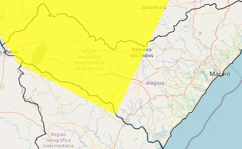 O Instituto Nacional de Meteorologia (Inmet) emitiu dois alertas de chuvas intensas para Alagoas, válidos a partir desta quinta-feira (26) até sexta-feira (27). Os avisos são classificados nas cores laranja (Perigo) e amarela (Perigo Potencial), atingindo ao todo 100 municípios alagoanos.