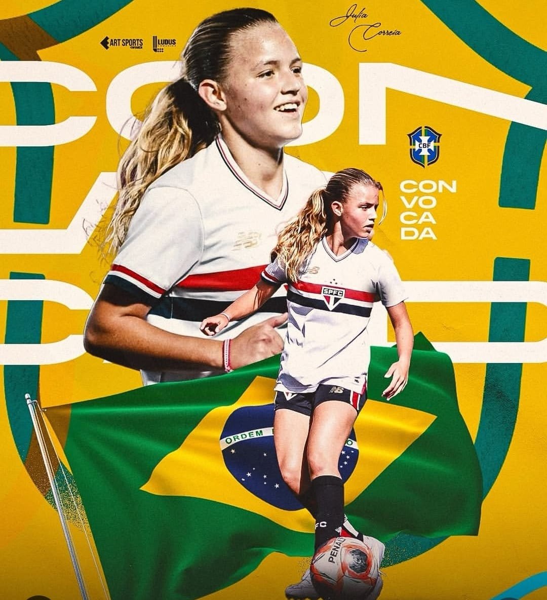 Júlia Correia é uma jóia do futebol feminino. Atualmente joga no São Paulo, já passou por Corinthians e pelo Centro Olímpico. Hoje teve sua primeira convocação para a Seleção Brasileira Feminina Sub 15.