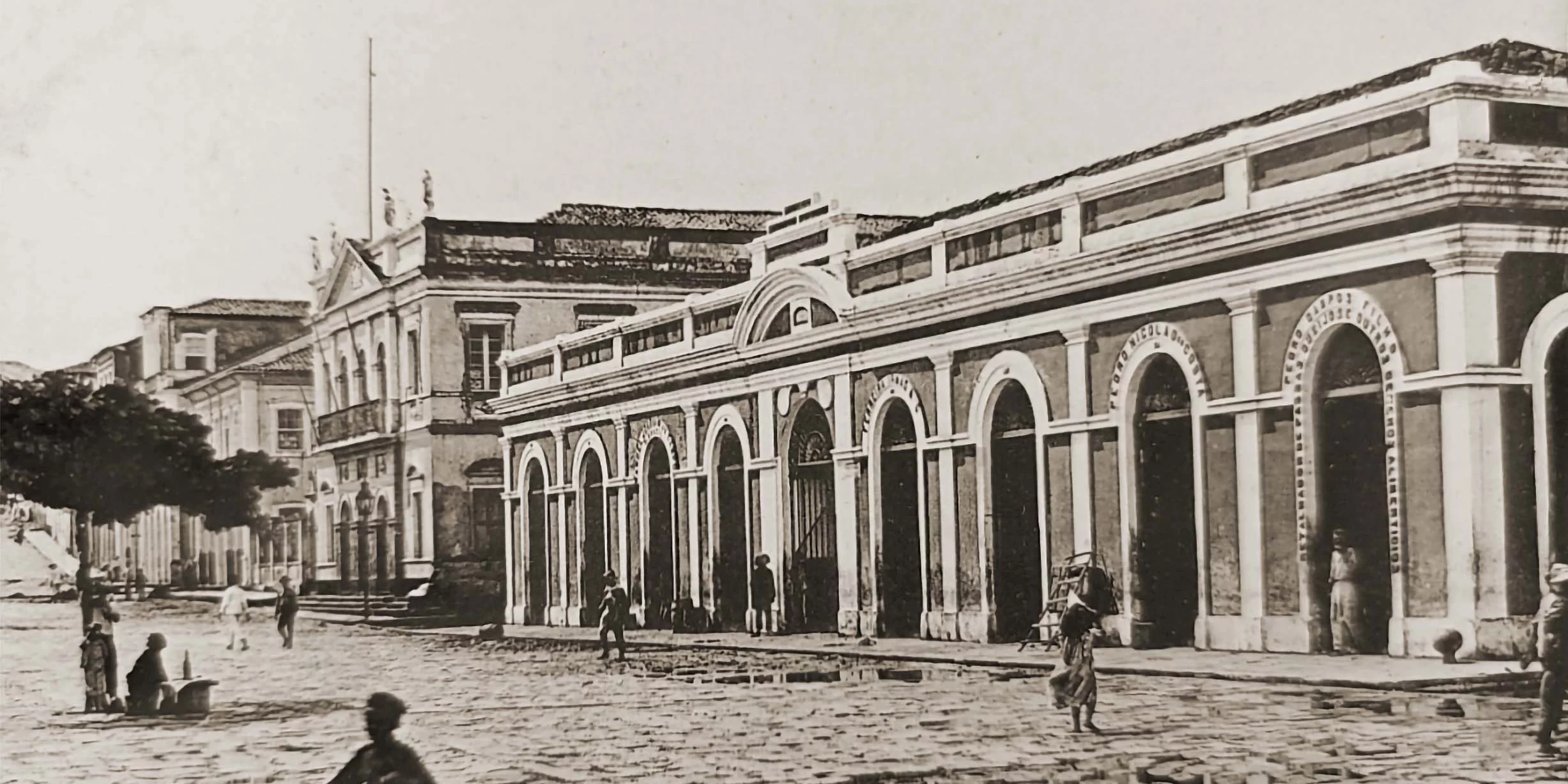 Teatro Sete de Setembro na década de 1910, já transformado no Cinema Ideal. No prédio também funcionou a Tipografia Novo Mundo, de Abelardo Brandão, e a Confeitaria e Café Ideal