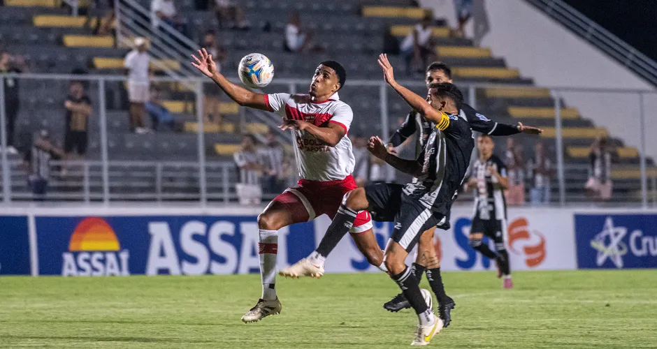 O Alvinegro respondeu aos 42 minutos: Iarley se mandou pela ponta esquerda, puxou a bola para dentro e chutou do bico da grande área, assustando Matheus Albino. Aos 47′, Vinícius Nunes tentou escapar pela esquerda, mas Cristian Lucca, atento, chegou primeiro na bola e mandou para longe, afastando o perigo. E o 1º tempo acabou aos 48 minutos, após os acréscimos de 3 minutos.