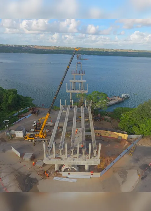 Com 1.180 metros de extensão e 18 metros de largura, a ponte já começou a receber as vigas que sustentarão o tabuleiro. Das 120 previstas, cinco já foram instaladas. Cada peça tem mais de 35 metros de comprimento e pesa cerca de 80 toneladas. O projeto inclui ainda um vão central de 150 metros e altura de 30 metros no trecho navegável, permitindo a passagem de embarcações.