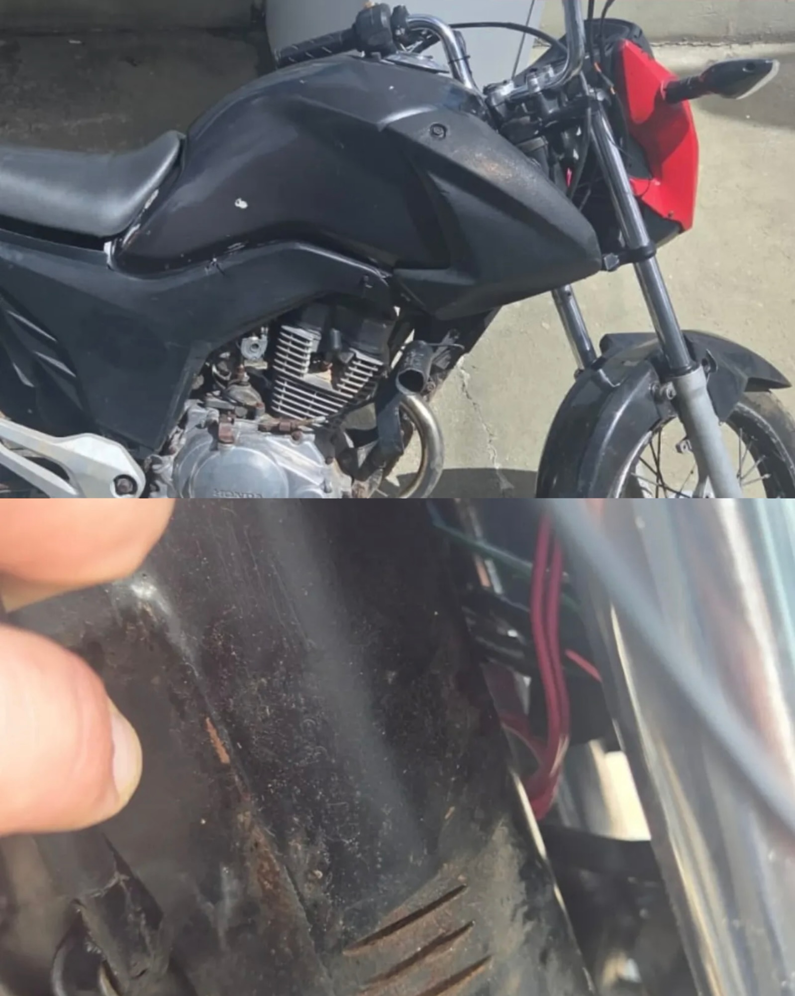 Durante patrulhamento preventivo, os policiais flagraram um indivíduo removendo a placa de uma motocicleta. Ao realizarem a abordagem, os militares constataram que o veículo apresentava sinais de identificação suprimidos e não possuía registro ativo no sistema do DETRAN, o que caracteriza crime conforme o Código Penal.